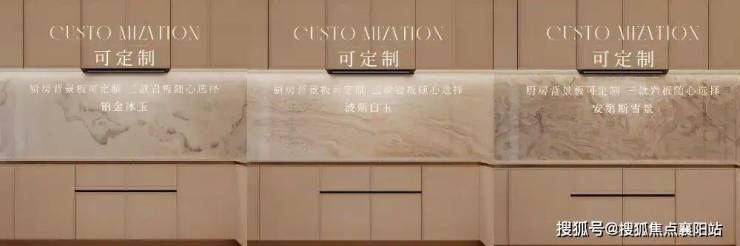 厨房背景墙可定制:背景墙为岩板铂金冰玉、波斯白玉、安第斯雪景三款可选,定制专属于你的大师厨房 。