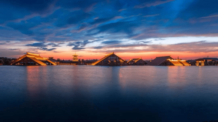 除了容积率低之外,香港兴业·兴云间还是 三水环抱, 天然围合的稀缺半岛墅区!