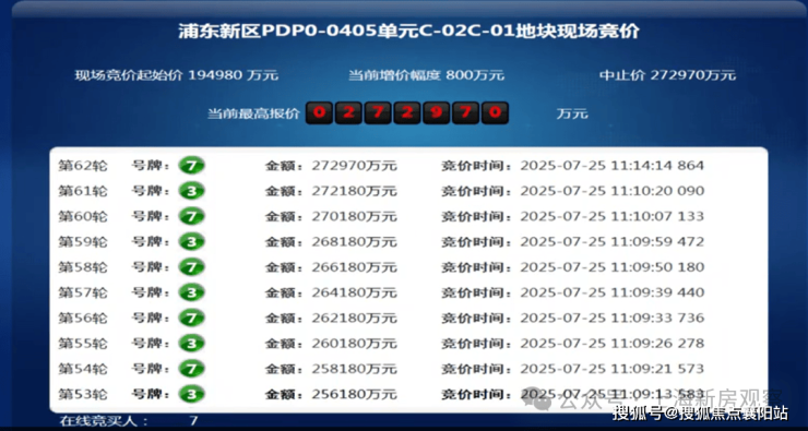 7月25日,上海2025年六批次土拍中浦东唐镇地块,最终由招商蛇口&中旅投资以中止价27.297亿元+商品住宅装修标准不低于4500元/㎡(集采价)+公共服务设施200㎡(计容)+高端人才住房配建比例0.7%竞得地块,成交楼面价52360元/㎡,溢价率40.00%!