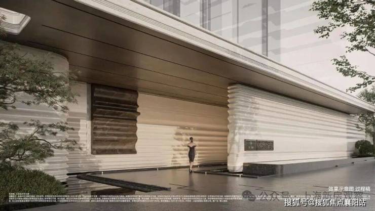 建筑立面上, 项目萃取希腊柱式秩序感,以古铜色铝板、超大玻璃幕墙与灵动弧线的高端组合,窗墙比最大达0.35,呈现出温润典雅的质感。同时,秉持“揉石成缎”的审美理念,以温润隽永的弧度造型呼应海派河流意向,打造项目温润雅奢的气质美学,呼应在文化下长成的高端客群。