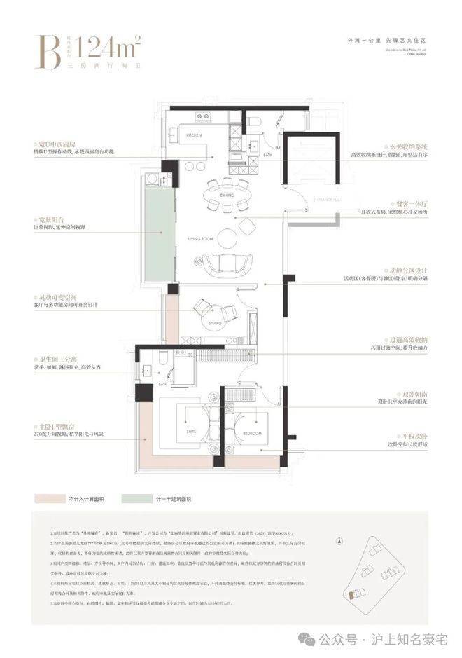 建面124㎡3房样板间展示如下: