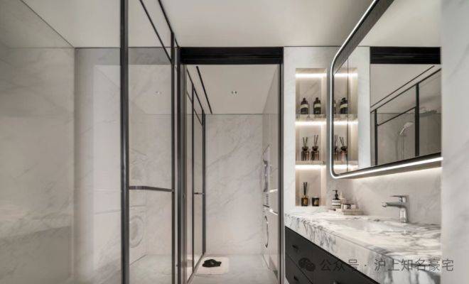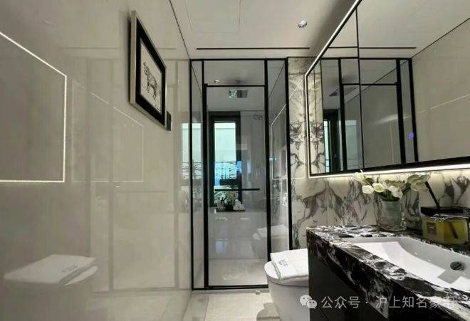 ✔高定选材:玄关地面选用“白雪公主”玉石,质感温润高级;地面延展祥云灰水墨岩,与外滩华尔道夫酒店同源材质,瞬间提升空间格调!