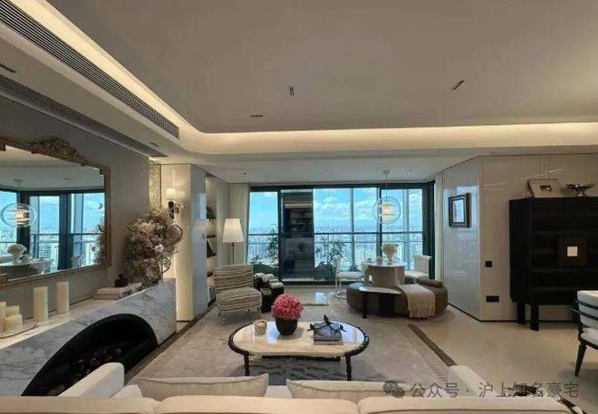 客厅以超大尺度惊艳亮相,若打通北向X空间,可拓展为约90㎡超级厅堂,家族宴请or高端社交,皆能轻松承载;约270°环幕视野将采光与观景效果推向极致,中高楼层可眺望陆家嘴三件套。