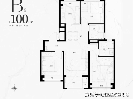 2. 100㎡三房两厅两卫:主力户型,改善优选