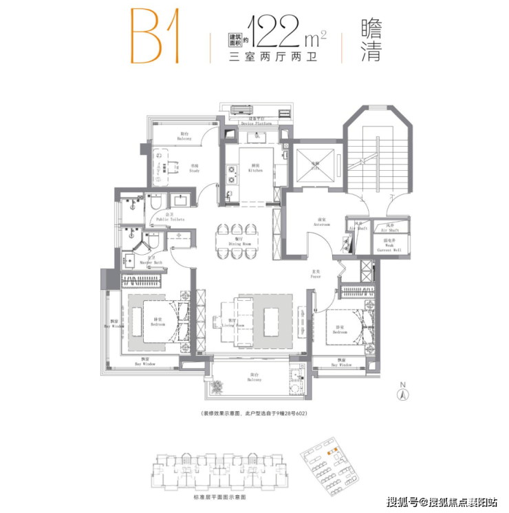建面约 122㎡ 三房两厅两卫 —— 进阶改善之选
