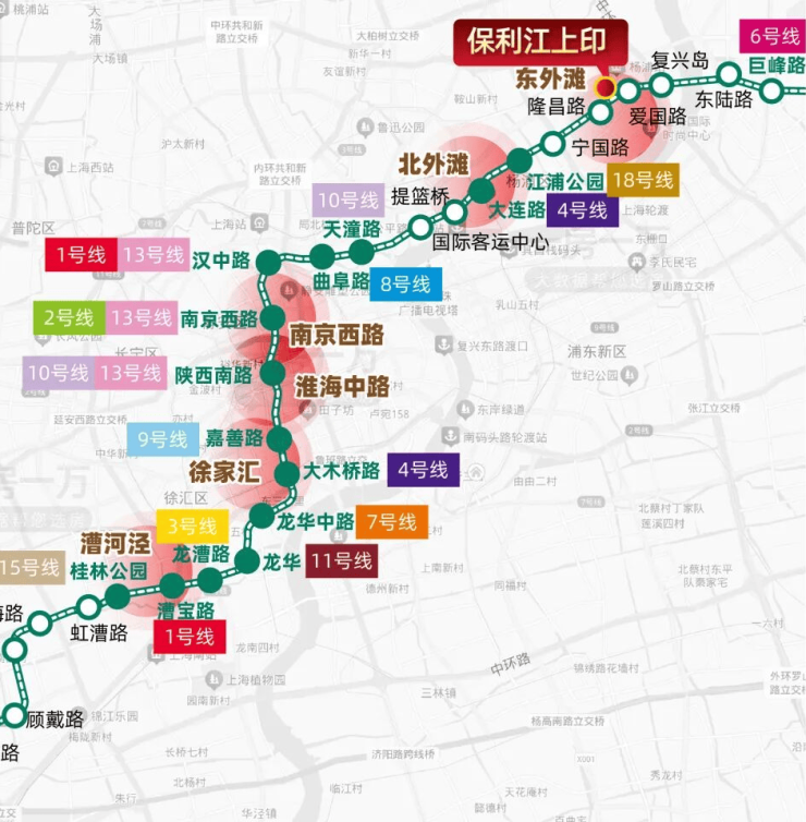 项目约400米可达轨交12号线爱国路站,可以快速串联 北外滩、苏河湾、南京西路、漕河泾等核心商务区,通勤效率直接纳入一线梯队,是真正意义上的地铁房!
