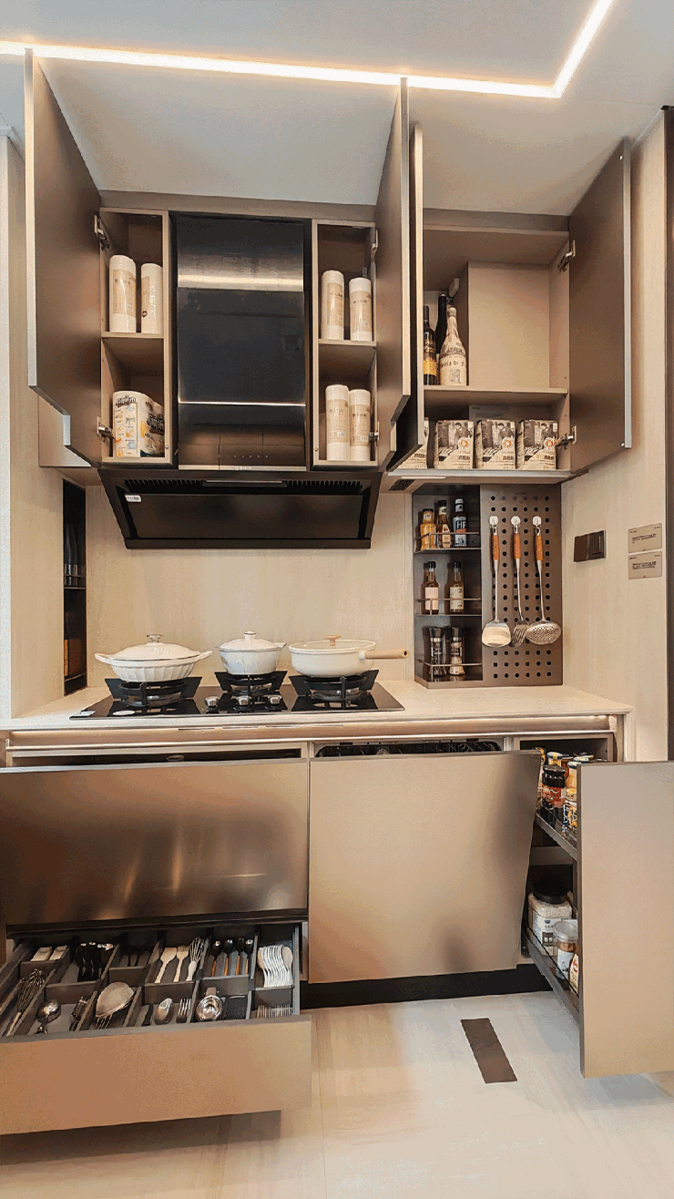 对于热爱生活的家庭而言,厨房是家的“心脏”。招商中旅壹江臻邸的餐厨空间,堪称一场针对“收纳焦虑”和“操作混乱”的精细革命。