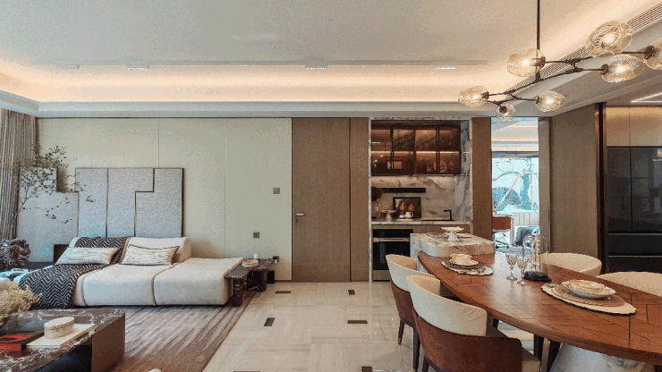 样板间中岛台及餐桌椅为非交付标准,仅供参考。实际交付后可根据自身需求,借鉴此类功能与动线设计,打造理想餐厨空间。