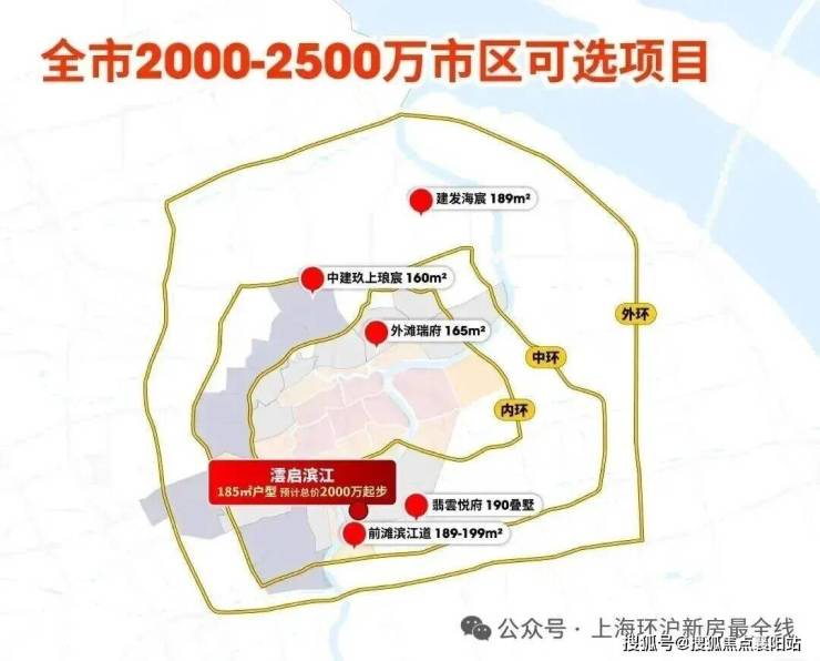 从预算入手,我统计了2000-2500万能享180㎡左右尺度的选项,基本都属于次一级地段,比如苏河湾后面的大宁,北外滩后面的四川北路,前滩后面的三林,陆家嘴后面的新杨思等。对于追求稳妥资产配置的客户来说,这样的地段显然是不够的!