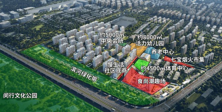 项目周边 3 公里范围内,更是汇聚了闵行体育公园、闵行文化公园、七宝生态公园、黎安公园等多个大型城市公园,总占地面积超 300 万㎡,是上海西中环沿线的 “城市绿肺”。其中,闵行体育公园直线距离仅约 1 公里,步行 10 分钟即可抵达,总占地面积约 84 万㎡,是上海中心城区最大的城市体育公园,园内拥有人工湖、湿地景观、体育场馆、儿童游乐区等多个功能区域,是周末带孩子游玩、亲近自然、运动健身的绝佳去处。