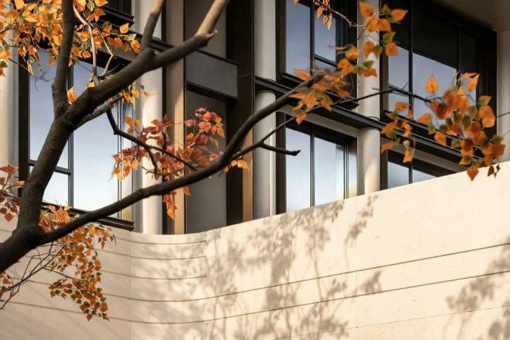 月光米黄石材门庭,经“揉石成缎”技艺赋予石材流动感,搭配玫瑰酒店同款非遗门牌,赋予归家第一重仪式感;超千方镜面主题水院,倒映天光云影与三株原生乌桕风姿,与社区外的水岸意境连贯呼应;