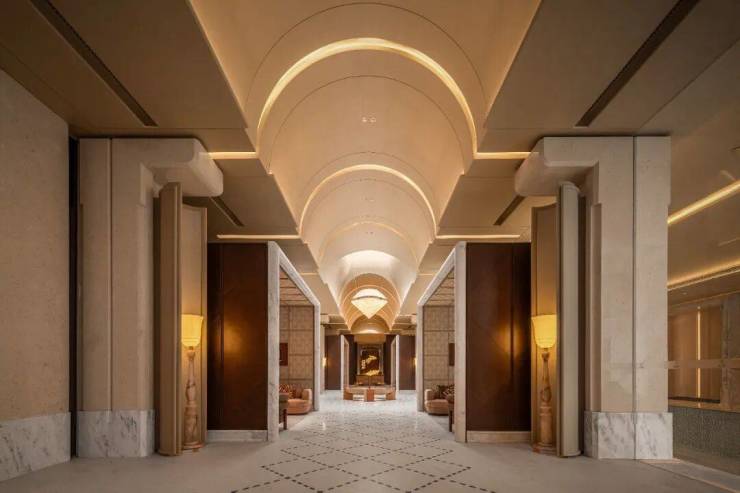 蜿蜒在水院中的神性洄廊,则复刻大师路易斯·康的经典美学,以黄金比例柱列捕捉光影,