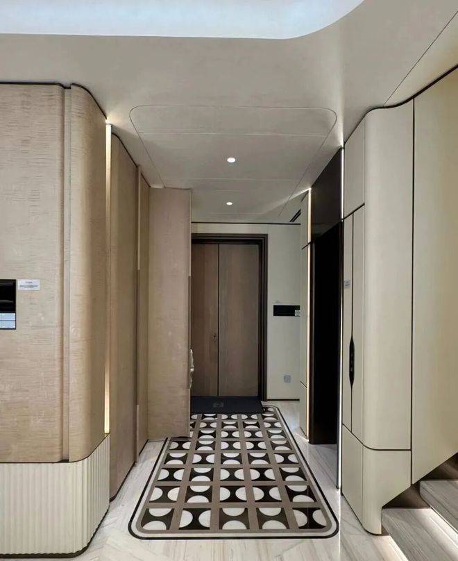 高定公区,重塑海派归家史诗;隐奢门庭:社区大门以古琦黑奢石手工锻造弧形幕墙,将珠宝镶嵌工艺融入建筑肌理;