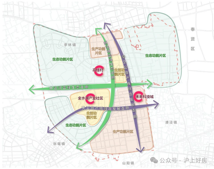 金山工业区。本就是“9大市级工业区”之一,目前更紧抓区域发展红利,提出了“到2025年,将金山工业区建设成为上海湾区的先进制造业高地和产城融合示范地”的“十四五”规划,并划分了3大主要节点。