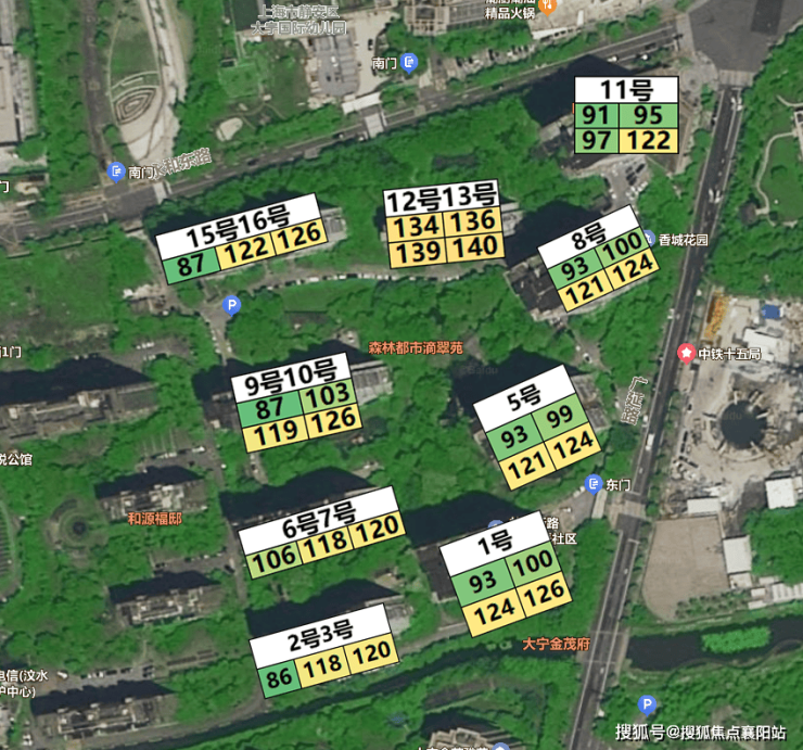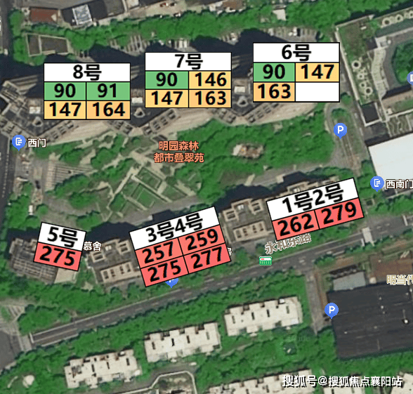 叠翠苑前排是电梯洋房,后排是高层。面积分布的区别也非常明显。
