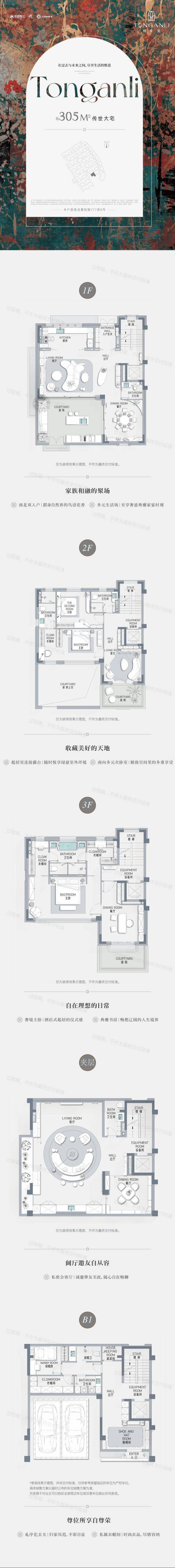 建面约305㎡,赠送地下室约185㎡;赠送花园、露台、阁楼;总价约5500~5850万;