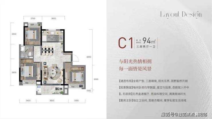 建面约 95-99㎡三房两厅一卫:爆款刚需三房,三开间朝南、南北通透、LDK 餐客厨一体化,主卧套房设计,宽景阳台连接客厅与次卧,空间利用率拉满,总价约 260 万起,适配三口之家、刚需刚改;