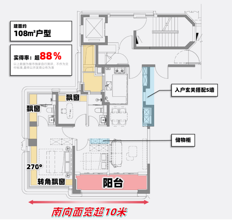 约108㎡边套户型实得率超88%—— 实际使用感受逼近传统120㎡甚至130㎡。 通过一系列新规允许的合理手段,把每一寸都转化为可使用的家庭空间。