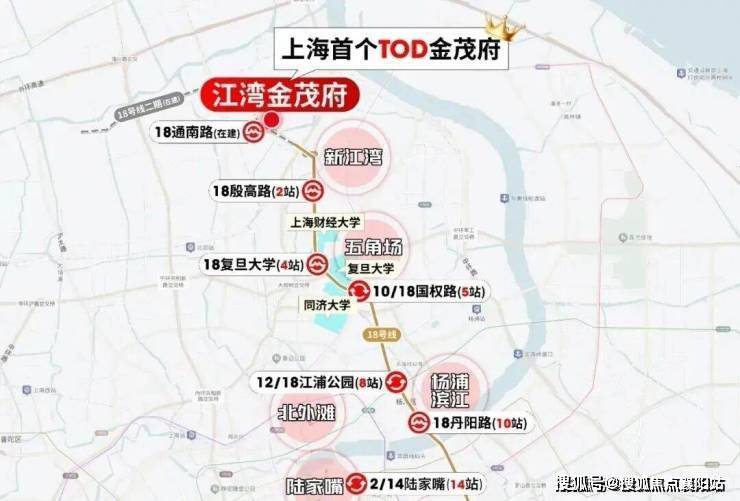 交通是改善家庭的核心痛点,而江湾金茂府直接实现“地铁口就在家门口”——项目与在建 18 号线通南路站步行仅约 50 米,真正的地铁上盖 TOD,预计 2027 年与项目同步交付通车,实现 “出户即入站” 的零距离轨交生活。