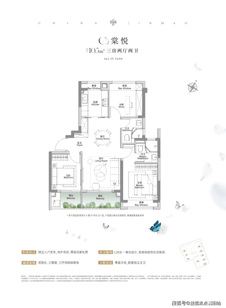 我们具体以本次加推的建面约105㎡户型为例: