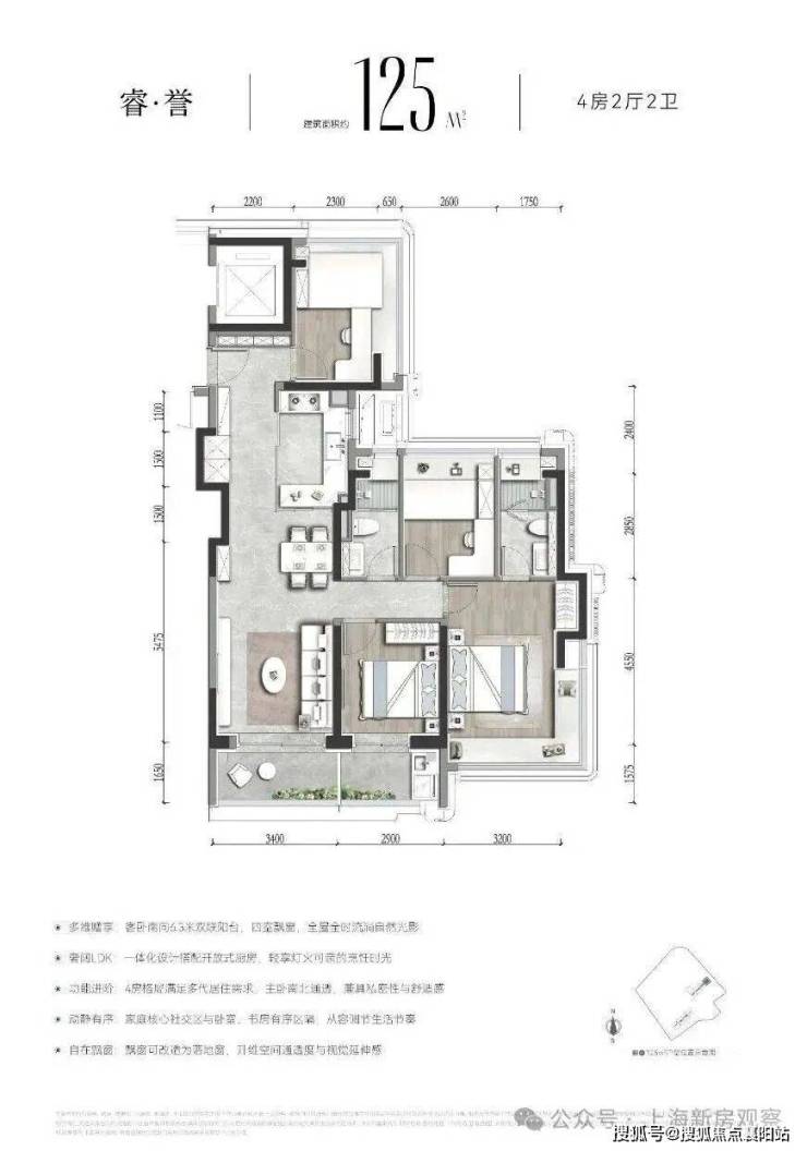 项目首开80%以上房源总价低于2000万!最低甚至只要约1627万起,首套首付约240多万就能在一步到位进阶内环内4房,非常诱人。