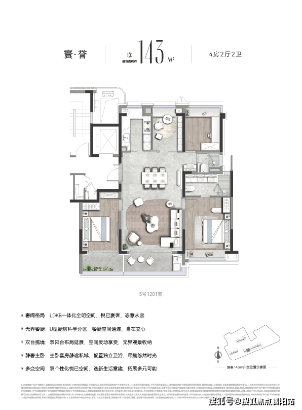 预算充足的改善家庭,还可选择 约143㎡4房户型 。作为 内环内稀缺的控总价4房 ,它在尺度与舒适度上颇为出彩: