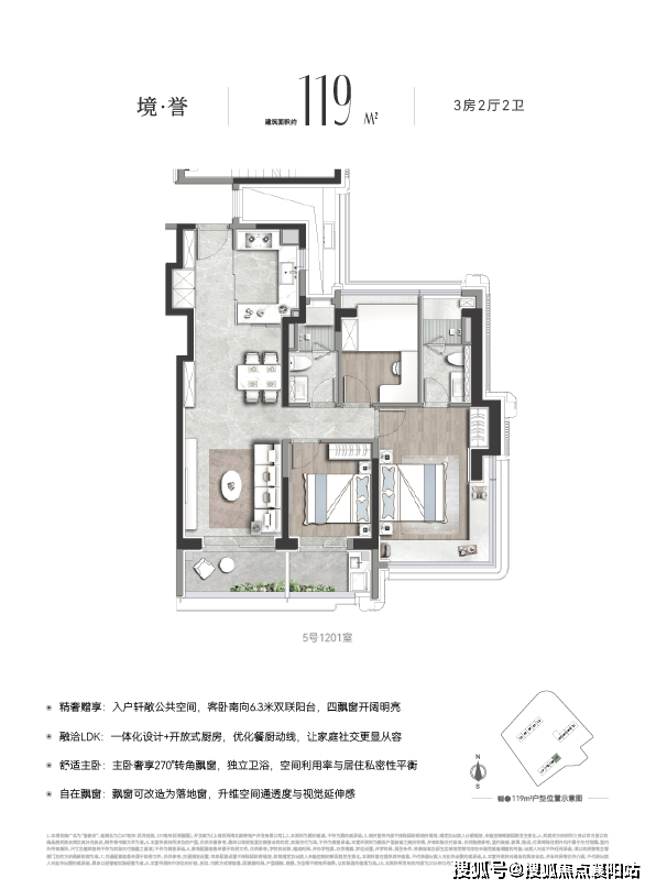 项目现售主力建面约112-119-143m²3-4房