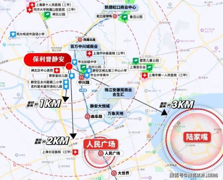 医疗方面: 项目周边约3km范围内上海市中医医院(三甲) 、上海长征医院(三甲) 、上海市第一人民医院(三甲)、闸北区中心医院、上海第十人民医院 (三甲) 、同济大学附属口腔医院(三甲) 环伺。