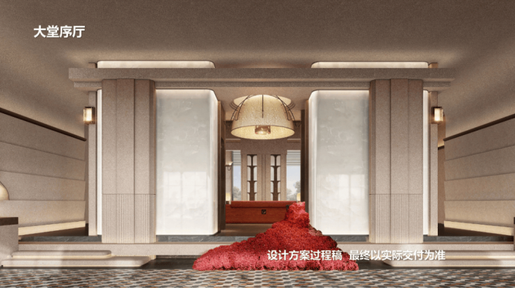 公区方面,从归家社区大堂、大堂序厅、以及入户单元大堂一路看过来,体现出一套脉络完整,层层递进的海派顶奢设计语言。