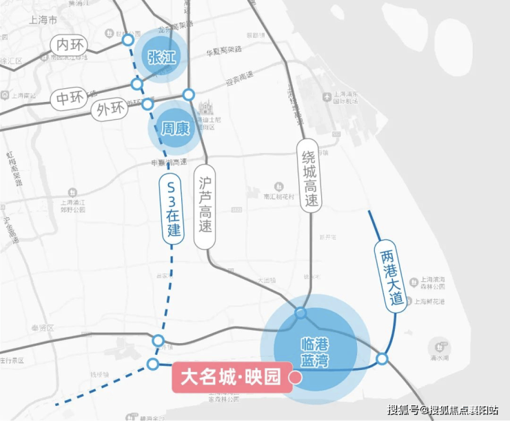 自驾出行(核心优势) :紧邻 两港大道、S2 沪芦高速、G1503 绕城高速、S3 沪奉高速 四大城市主干道,10 分钟上高速,半小时达浦东机场、45 分钟抵张江、1 小时通达市区核心板块,通勤效率拉满。