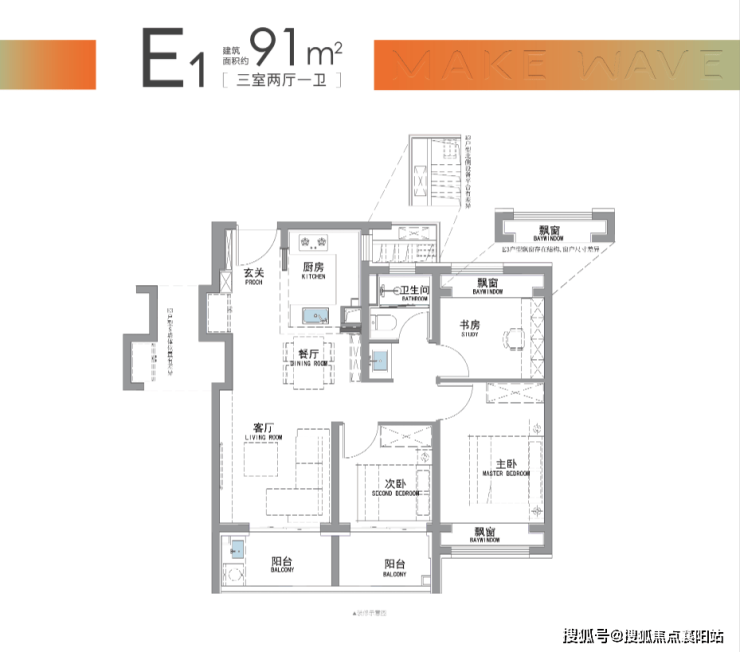 “南向双阳台+南北双飘窗”,构筑真3房户型!