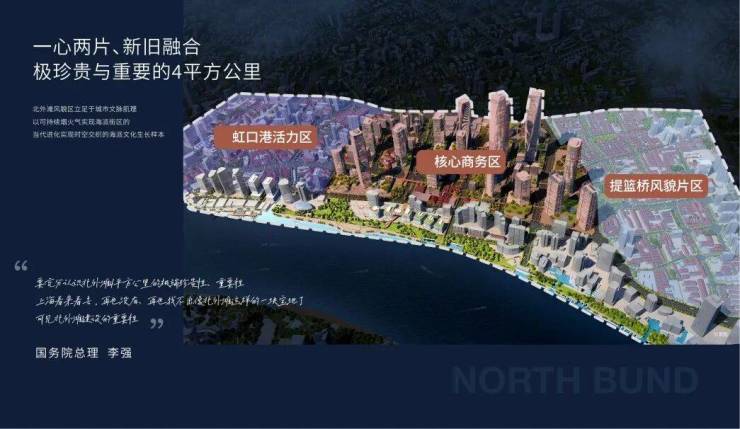 而北外滩作为上海“十四五”规划重点打造的 “全球中央活动区” ,与外滩、陆家嘴构成的“黄金三角”发展格局,这一顶层定位,助推 北外滩土地价值持续攀升已成为市场共识。