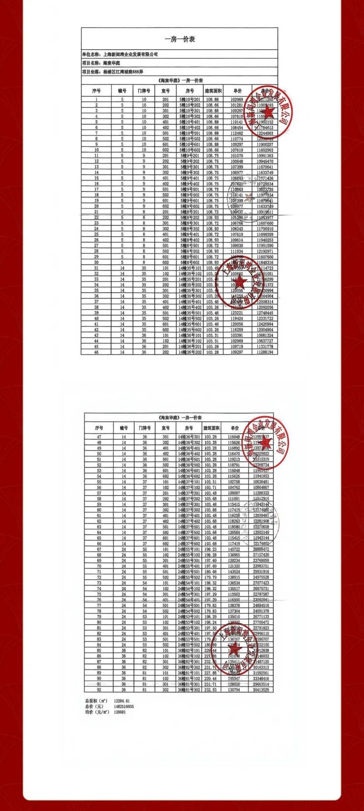 一房一价表