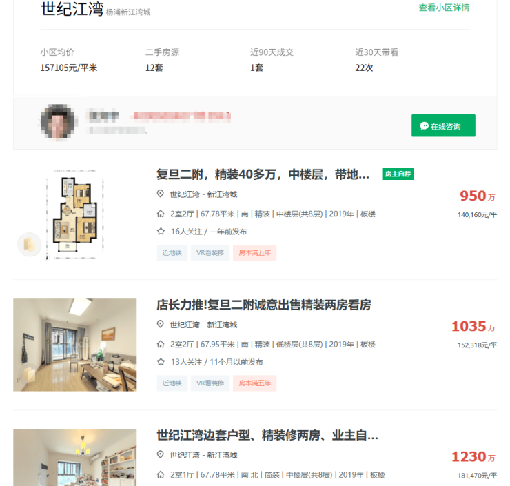 而新江湾2019年的次新房,世纪江湾挂牌价普遍在15万以上,约93㎡的小户型,最新成交单价达到了14.9万!