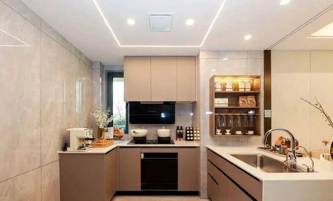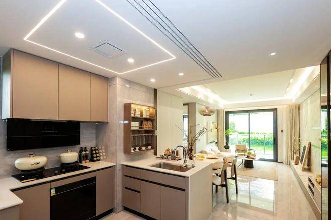 关照东方家庭的饮食习惯,科学规划厨房的空间功能,为家庭料理打造流畅的操作动线。半开放式厨房,不仅可开窗通风,同时精选方太品牌高端系三件套,预装全自动的嵌入式洗碗机、超强吸力的抽油烟机和易清洁的安全燃气灶,有效解决中式烹饪的油烟烦恼。考虑到夏天气温炎热,厨房吊顶预装凉霸,让厨房清爽降温。