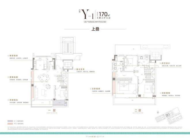 上叠产品创新采用南北双露台+南向双阳台布局,270度全景采光面让室内外空间完美融合。边套户型的1楼客餐厅和2楼主卧,更增设侧飘窗,将社区美景尽收眼底。