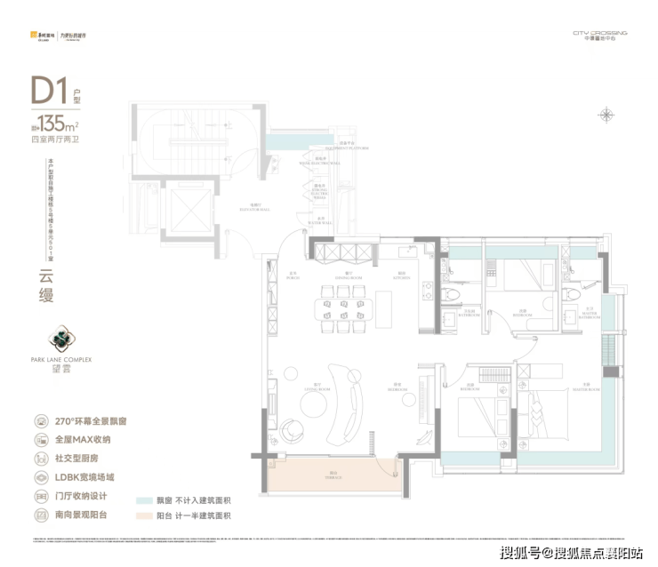 中環置地中心·望雲135㎡为 8层纯洋房,容积率仅1.8,一梯两户,实得率约91% ,是北中环稀缺改善藏品。