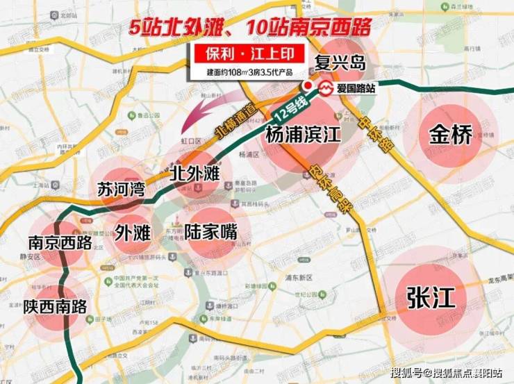 「保利・江上印」坐拥内中环满分级出行配置: 步行距离爱国路地铁站约500米+北横通道近在咫尺 ,轨交5站北外滩来福士、10站南京西路,在江浦公园站换18号线、大连路站换4号线,串联主城所有核心商圈!