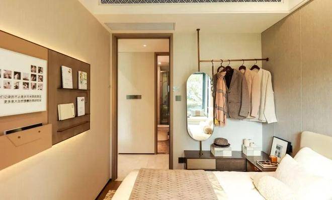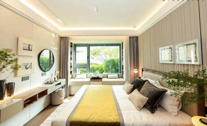 每一间卧房皆设飘窗,为每一颗热爱生活的心,预留一方浪漫天地。主卧参考酒店式套房,拥有衣帽间和独立卫浴间,尊重日常生活的私密感。与此同时,卫浴间的飘窗附设壁龛,可用于收纳,增加实用性。