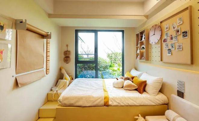 合理利用儿童房的有限空间,让床箱、柜体与飘窗整合一体化设计,让晨光唤醒睡梦的孩子。床体长度增加至2米,不仅扩容储物收纳的空间,同时关照孩子的未来成长。