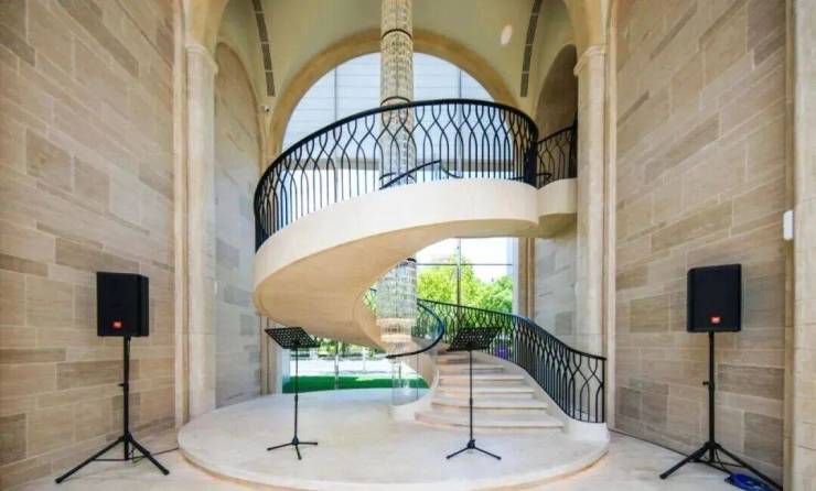 例如入户玄关铺设有“石材皇后” 鱼肚印象 ,这种级别的奢石在很多项目中通常仅作局部镶嵌。