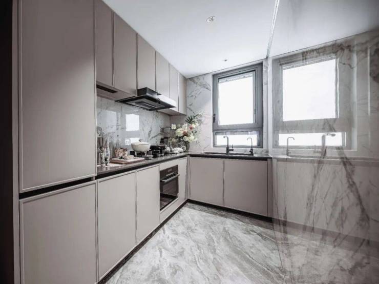 厨房配置 :选用 米勒(Miele)进口厨电六件套 (烟机、灶具、烤箱、洗碗机、微波炉、冰箱),欧派高端定制橱柜,石英石台面,收纳空间充足,烹饪体验一流。