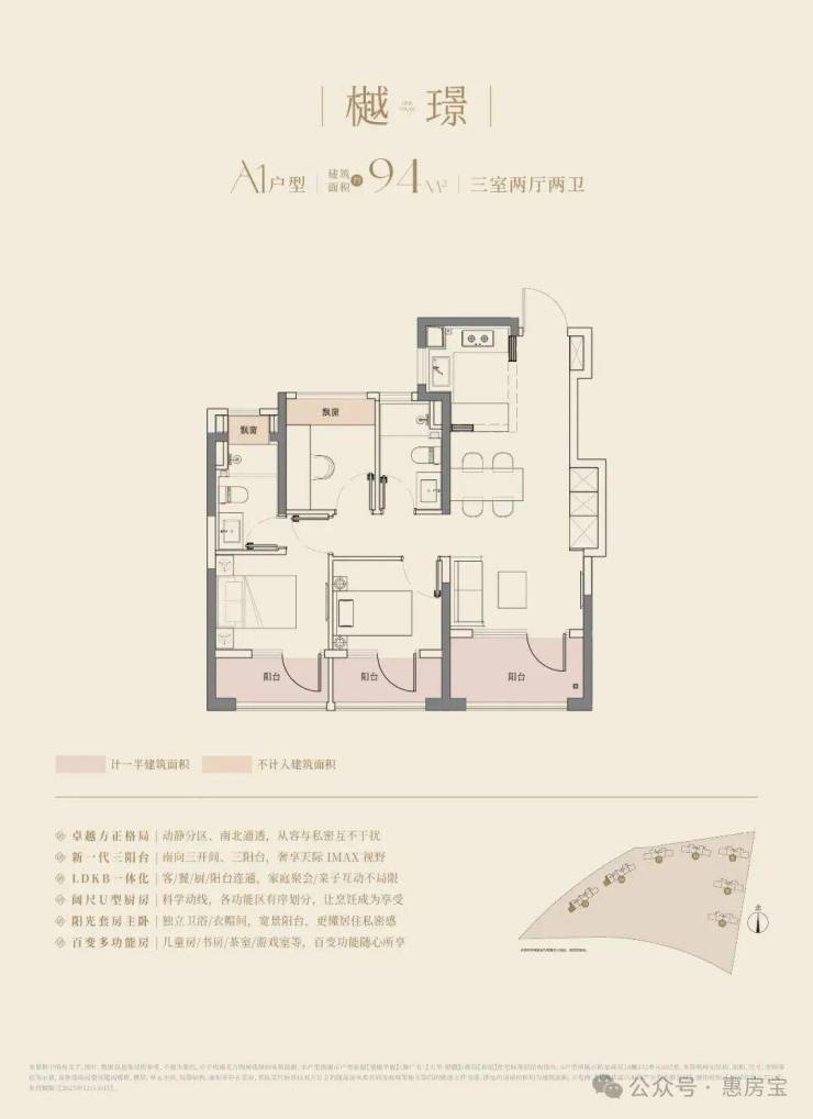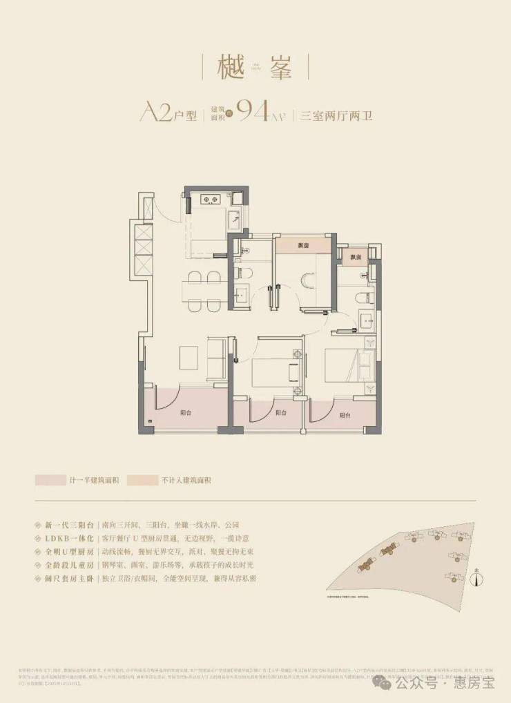 建面约94m3房2厅2卫