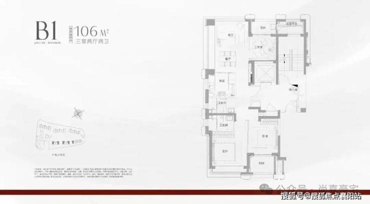 主力户型面积:建筑面积约106㎡三房两厅两卫