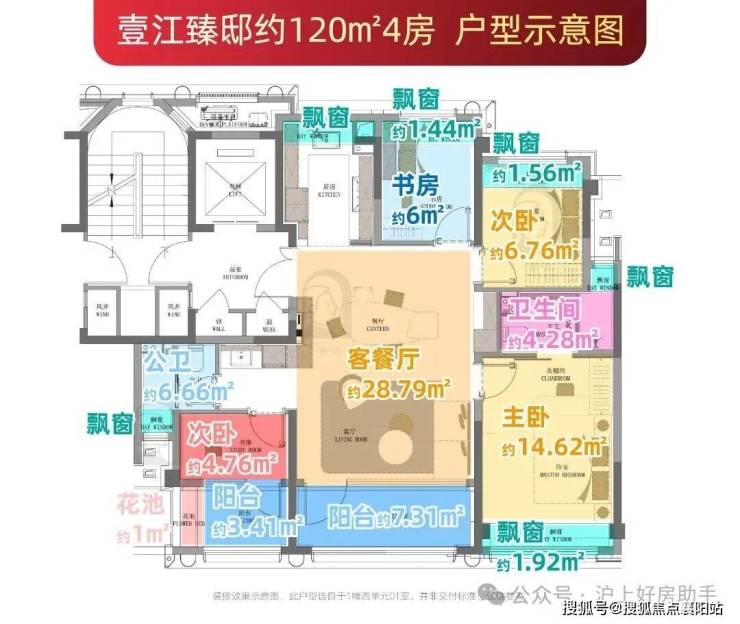 建面约120㎡四房: