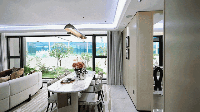 社区内部更是匠心打造 35% 高绿化率海派园林,以 “浮岛社区” 为设计理念,住宅架设在三层之上,搭配名贵全冠树木、四季花卉、镜面水系、休闲廊架、中央花园等多元空间,营造移步异景的自然体验。1.8 超低容积率带来超宽楼间距,最大楼间距超 40 米,既保证每户最大化采光通风与观景视野,又彻底保障居住私密性。全人车分流设计,车辆直接驶入地下车库,社区内部无车辆通行,保障老人与小孩的出行安全,同时营造静谧、纯粹的居住环境。这种 “外部双公园 + 苏州河 + 内部低密园林” 的生态格局,在静安核心实属罕见,让大华・静安年华的业主真正实现 “推窗见绿意、入院享自然” 的理想生活,居住舒适度、诗意感与私密性远超多数主城核心项目。