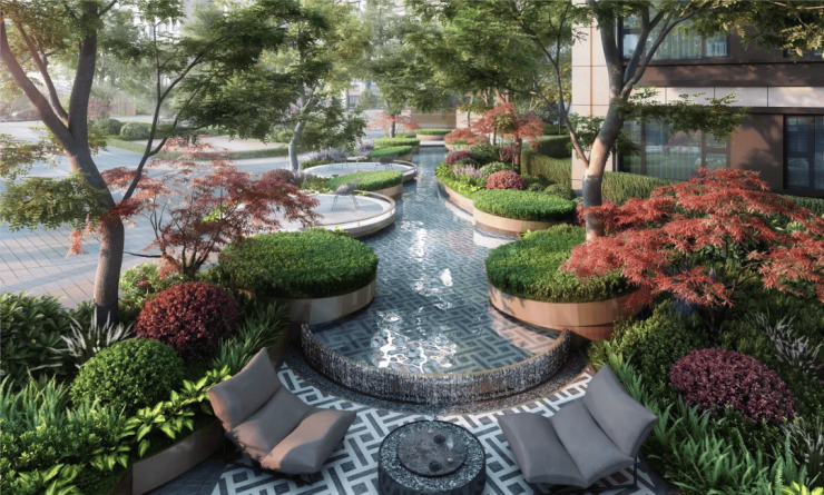 除了外部的生态优势,静安玺樾社区内部也精心打造了高品质园林景观,以“森居美学,宜居共生”为核心,融合了东方园林的雅致和现代园林的简约,打造出沉浸式的社区园林。设计师充分利用社区地形优势,打造了曲径通幽的步道、错落有致的绿植、清澈见底的人工水景、造型别致的景观小品,相互映衬,就像一幅优美的山水画卷。走在社区里,每一步都能看到不一样的风景,每一处都能感受到绿植与光影的交融之美,仿佛置身于天然氧吧之中,每一次呼吸都能感受到自然的清新与温润。