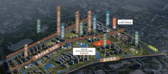 上师大九年一贯制学校完成立项批复,预计2027年开工、力争2028学年开启招生,上师大附属幼儿园(规划中)已签约,WLSA上海国际学校第三校区落址上虹桥,江桥大学城规划曝光;200亩绿野谷生态走廊一期实景呈现,二期加速建设,未来将串联迎虹湖(规划中)与一字川(规划中),构建媲美纽约中央公园的生态住区;直线距离约1.5公里龙湖欢肆已开业运营,直线距离约3.5公里江桥万达广场、南翔印象城MEGA环伺,板块内规划约1.4万方社区商业,东区规划约7.6万方万佛寺特色文化商业街区(规划中),满足高阶生活需求;华瑞时尚、聚升全球贸易中心、苏建研上海总部、厚朴堂中医总部四大产业巨头组团入驻东区,强力拉升区域产业能级,全面激活上虹桥板块发展动能。