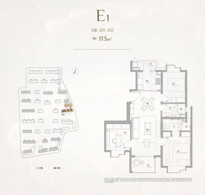 热门小户型产品(101㎡/115㎡)、经典136㎡三房产品