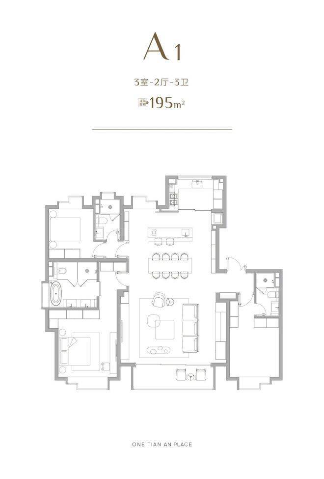 建面约100㎡2房2卫,这是整个天安1号B区唯一一个总价在千万以内的产品,上车首选。建面约113㎡的3房,三开间朝南的设计,户型的整体尺度感更大,餐厅甚至可以放下一张小圆桌。并且3房的实用性可以满足一个家庭的全生命周期需求。建面约134㎡3房,几乎可以看做是双套房的设计,尤其是主卧带浴缸和双台盆,保证了各个家庭成员的私密空间,适合一家三口的改善之选。建面约195㎡3房是前期大卖的爆款户型,三套房设计,超大主卧空间,南北通透超大客餐厅,中西厨分开.这个户型让几乎家庭每个成员都能有很大的独处空间的同时又能有很多的家庭互动氛围。✅天安1号售楼处电话:400-833-6309(官方售楼处电话)
